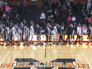 Milligan and Bryan teams shaking hands after the game