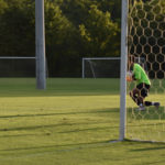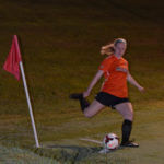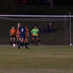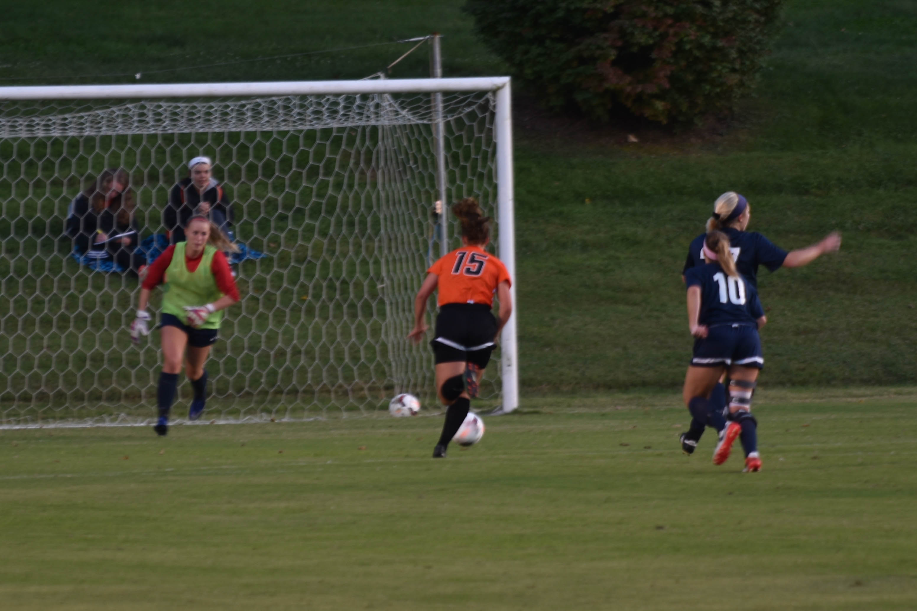 Sophomore Dharma Fawbush squares up to the goal making the score 2-0.