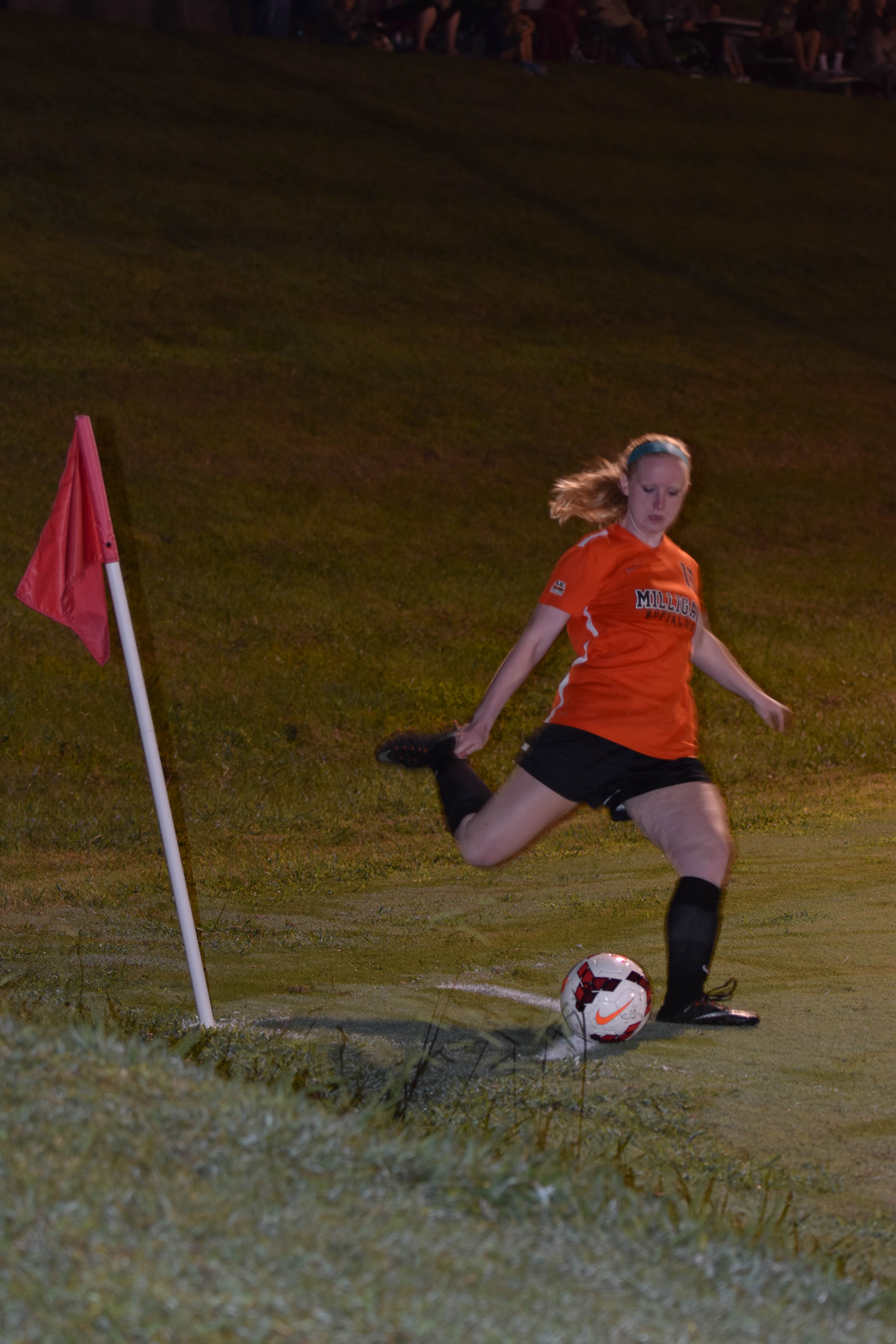 Sophomore Alyson McMillan crosses the ball in to sophomore Bekah Cundiff to put Milligan up 1-0.