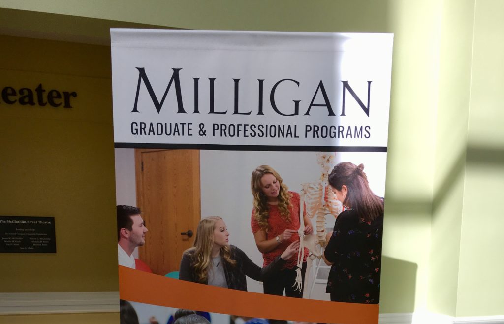 On November 7, a graduate school fair was held in the Gregory Center. Multiple schools and organizations were in attendance. Milligan and Emmanuel Christian Seminary advertised their graduate programs as well as nearby regional schools such as Emory and Henry College and Tusculum University. Some schools came from further away such as Lipscomb University and West Virginia School of Osteopathic Medicine. Two residency programs: 215 of Southeast Christian Church and First Wesleyan Church were also in attendance.
