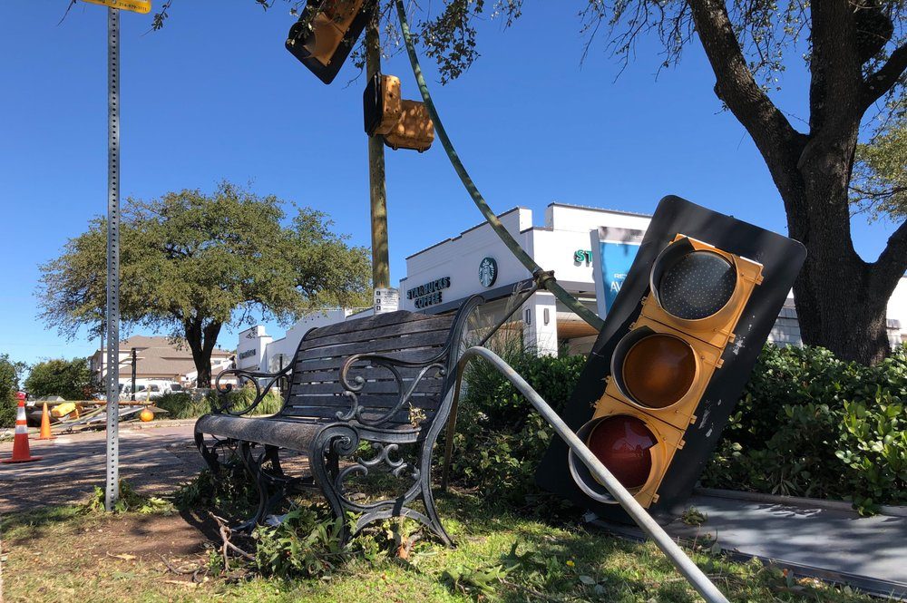 Headline photo: A stoplight sits beside an intersection in the aftermath of recent tornadoes in Dallas. Photo from AP.