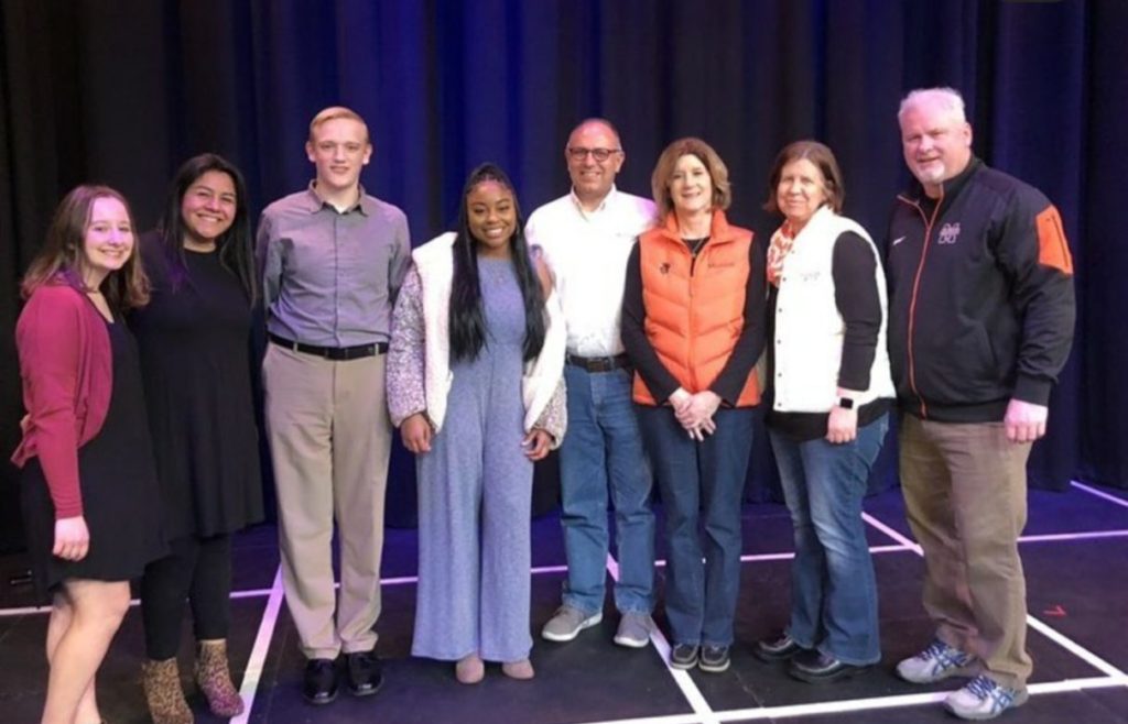 Headline photo: Students performed on the stage in Gregory Auditorium. The winners pose with the judges and hosts.