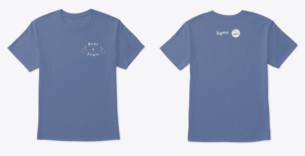 If you want to purchase a Vespers t-shirt, click here. Vesper’s “Bear Fruit” stickers will also be available to purchase. **When checking out, use code “vespers” for free shipping.