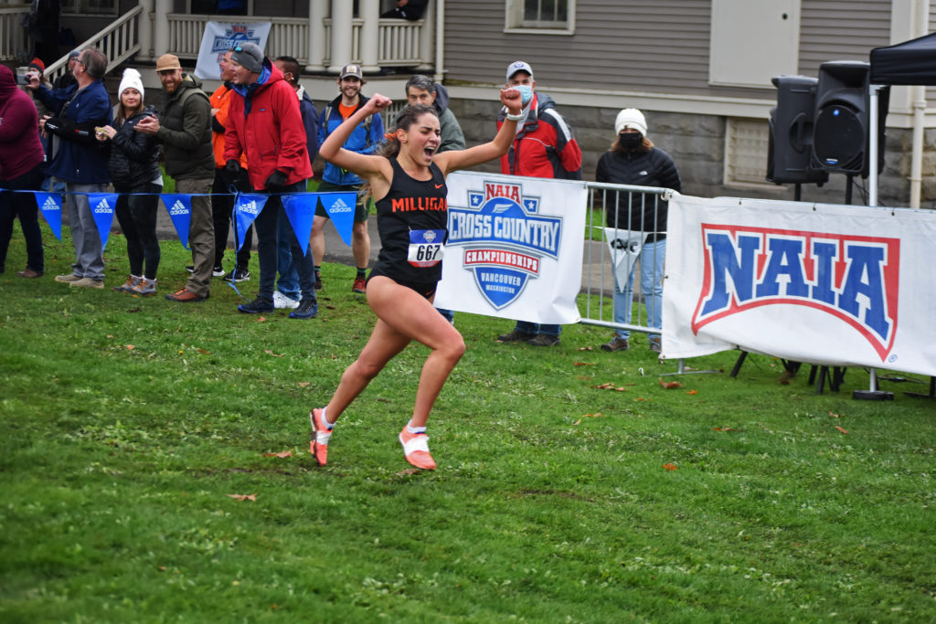 Sophomore Alyssa Bearzi won the individual title with a time of 18:14, marking Bearzi’s win as the first-ever individual cross country title for Milligan.