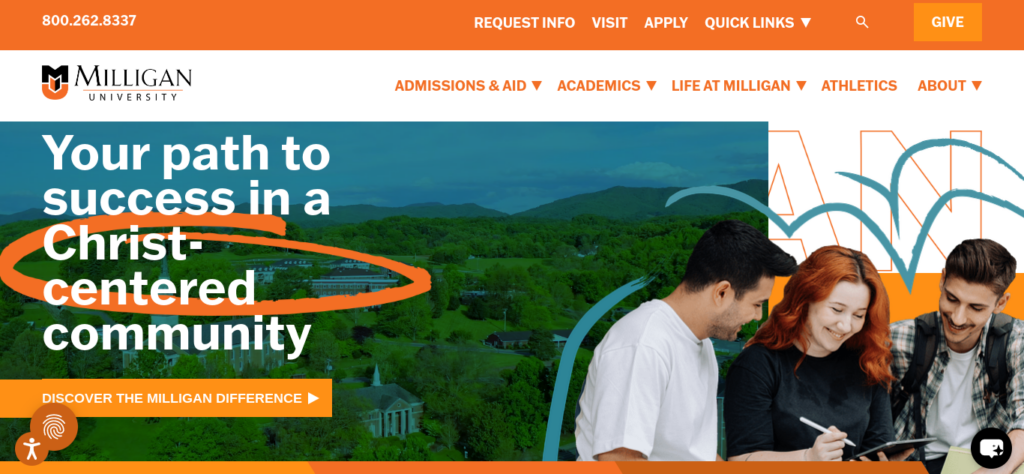 Milligan’s marketing department collaborated with an outside company, working closely with the admissions office and every academic area on campus to ensure the accuracy and currency of the information provided.