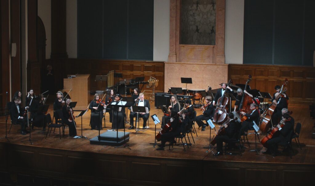 Along with the orchestra, the concert featured music professors and instructors Alena Carhart and Noah DeLong, as well as Rebecca McClain, who provided accompaniment and played the organ.