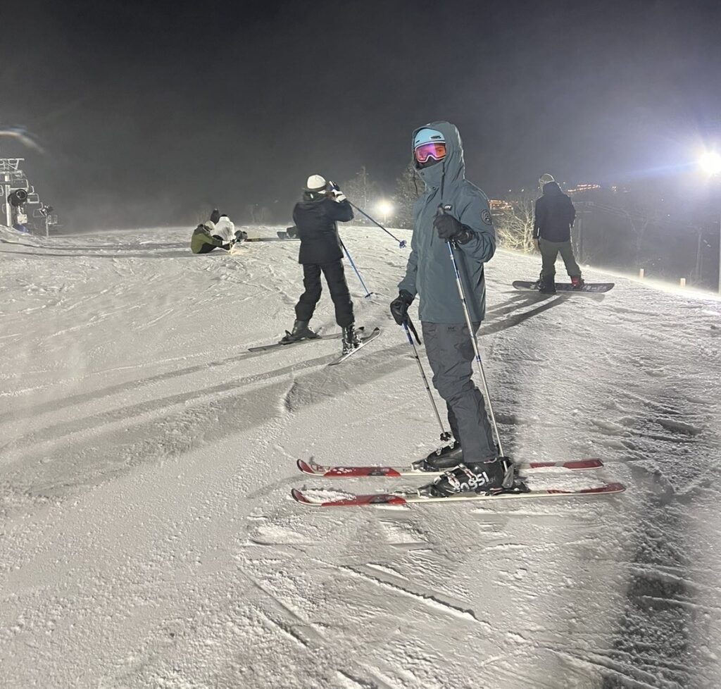 After almost two hours on the slopes, a few students took a break. They went inside to warm up, eat food, and drink hot chocolate. About an hour later, they returned to the mountain and skied for another hour until the lifts closed at 9 p.m. For the final run of the night, everyone rode down together.