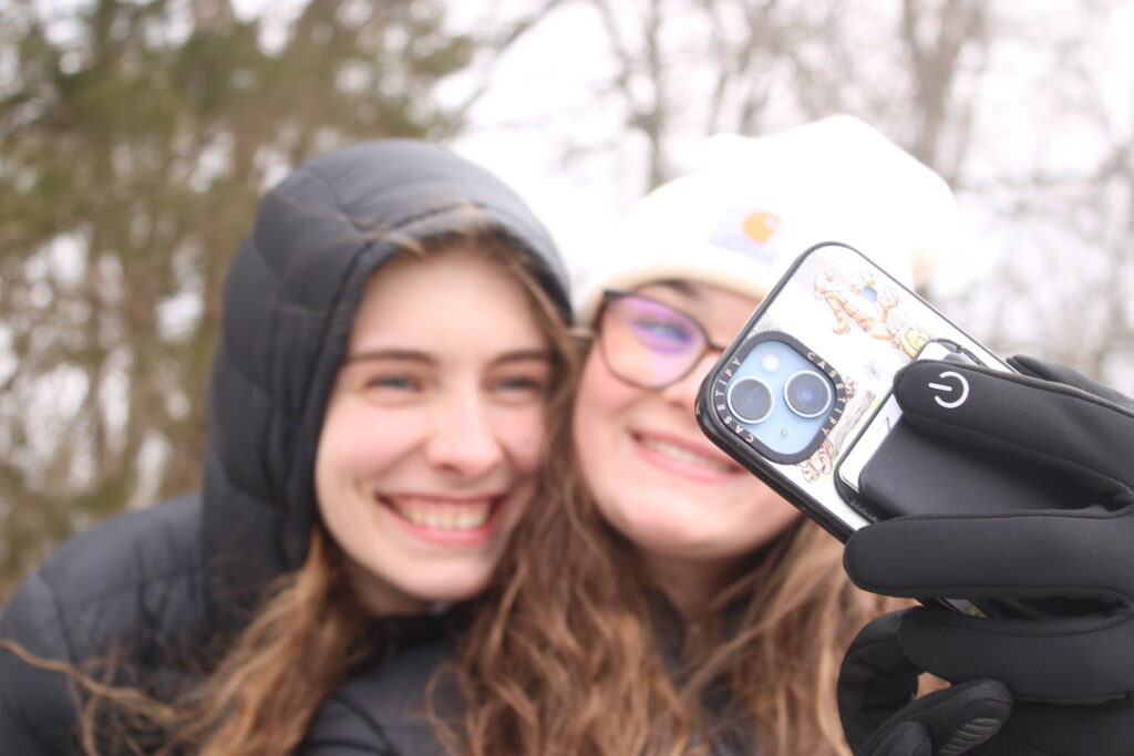 Photo: Two Milligan students taking a selfie in the snow (by Danielle Roberts)