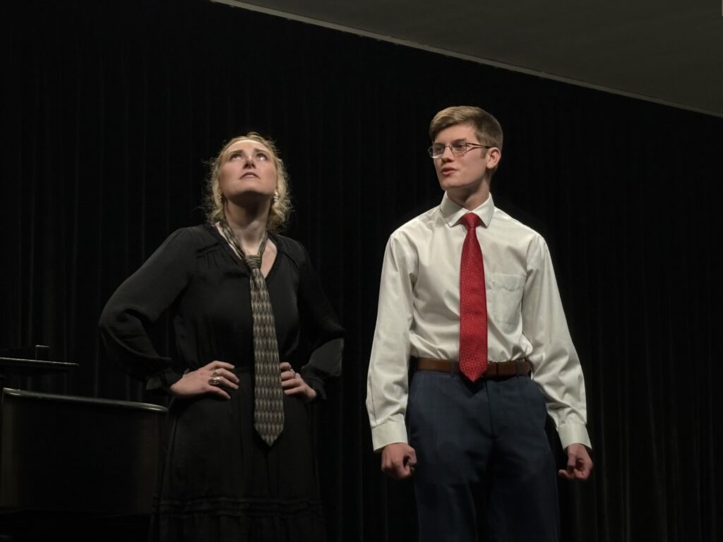 Photo: Ariana Floyd and Conner Morgen performing “Fine” from “Ordinary Days” by Adam Gwon at music recital in Lower Seeger on 2/12/26 (by Danielle Roberts)