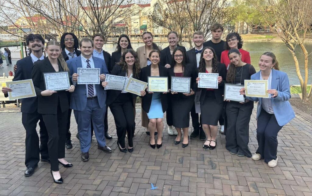 Milligan’s Model United Nations team won 12 awards, including four team honors, at the Southern Regional Model United Nations conference held March 19-21 in Charlotte, North Carolina, securing Milligan’s best result at the competition ever.